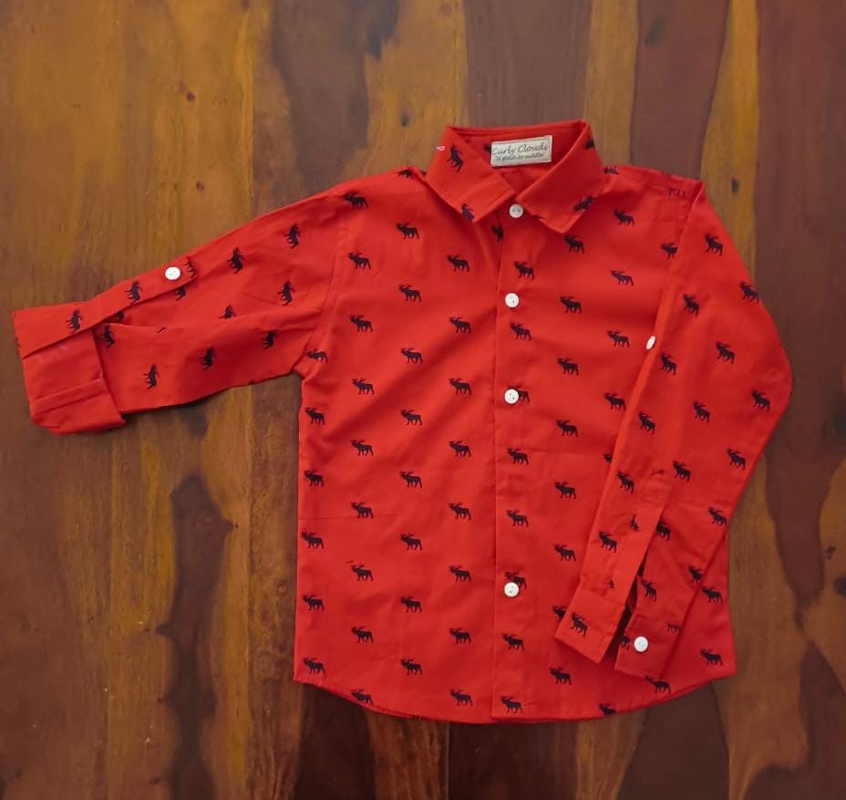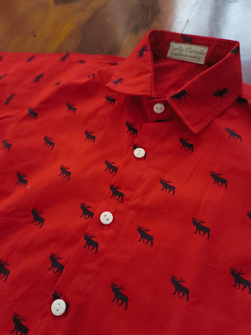This Christmas reindeer printed shirt in red is the perfect festive addition to your holiday wardrobe. Made from soft, cotton fabric.